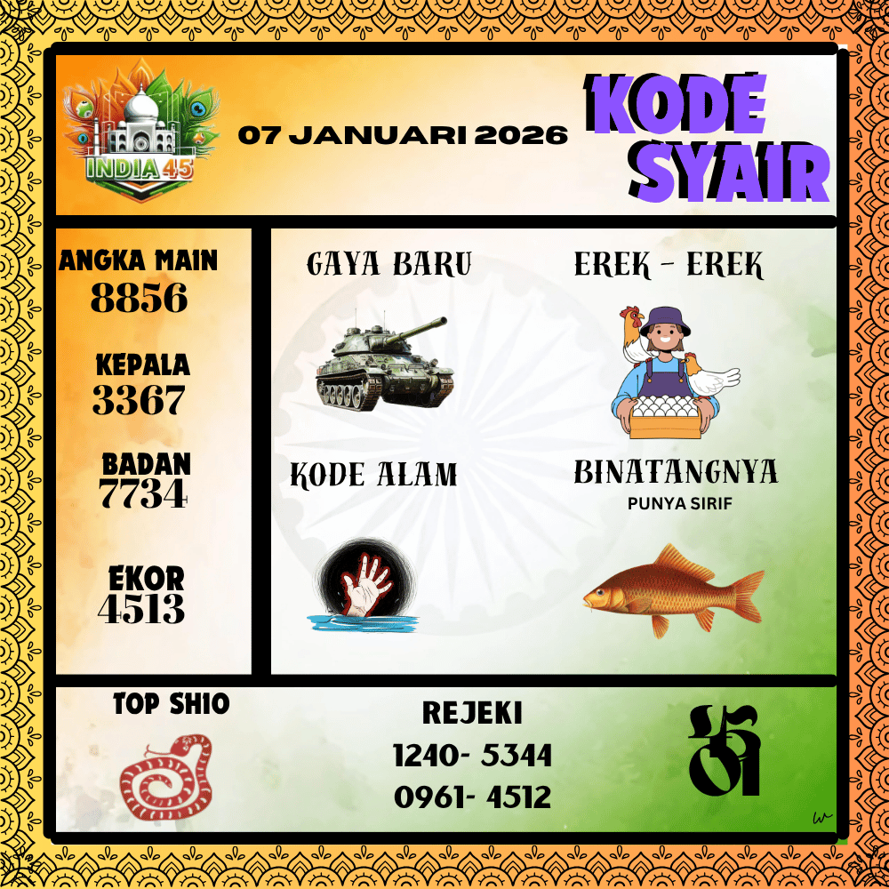 Kode Syair India45 Pools 07 Januari 2026