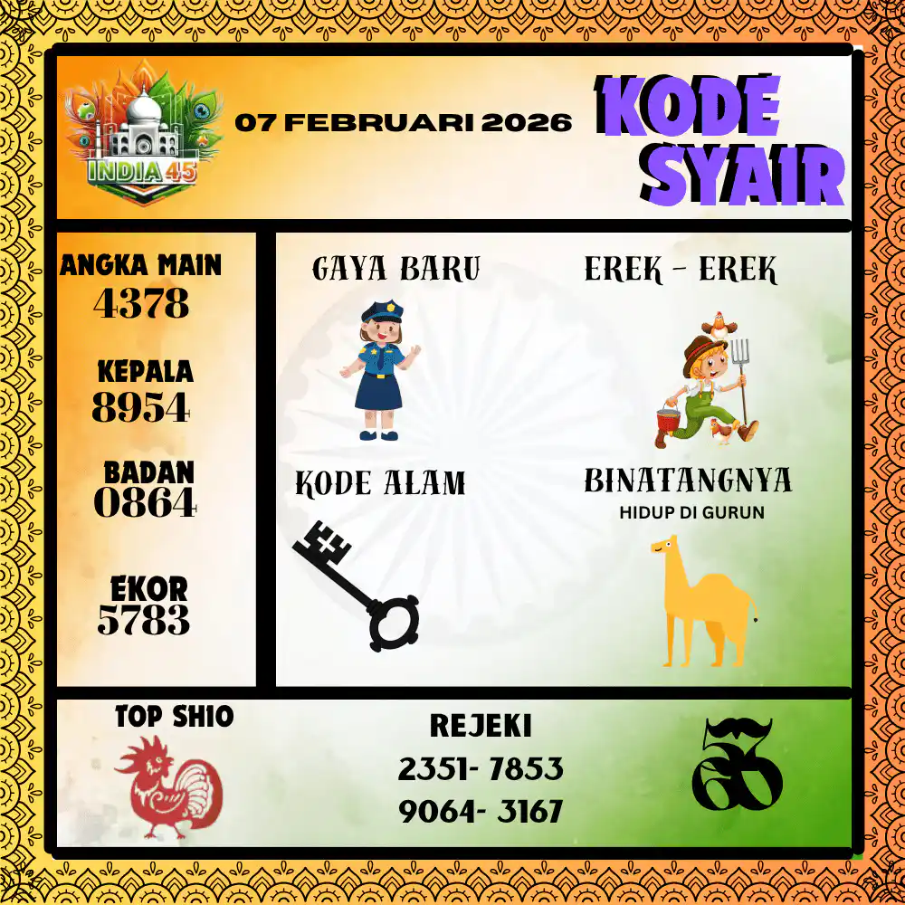 Kode Syair India45 Pools 07 Februari 2026