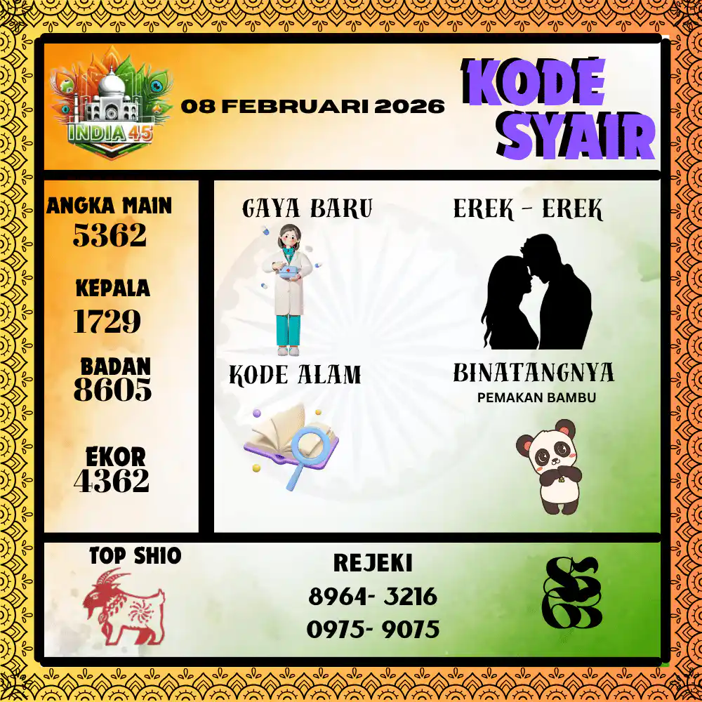 Kode Syair India45 Pools 08 Februari 2026