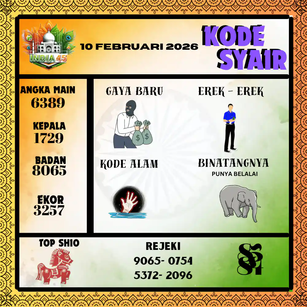 Kode Syair India45 Pools 10 Februari 2026
