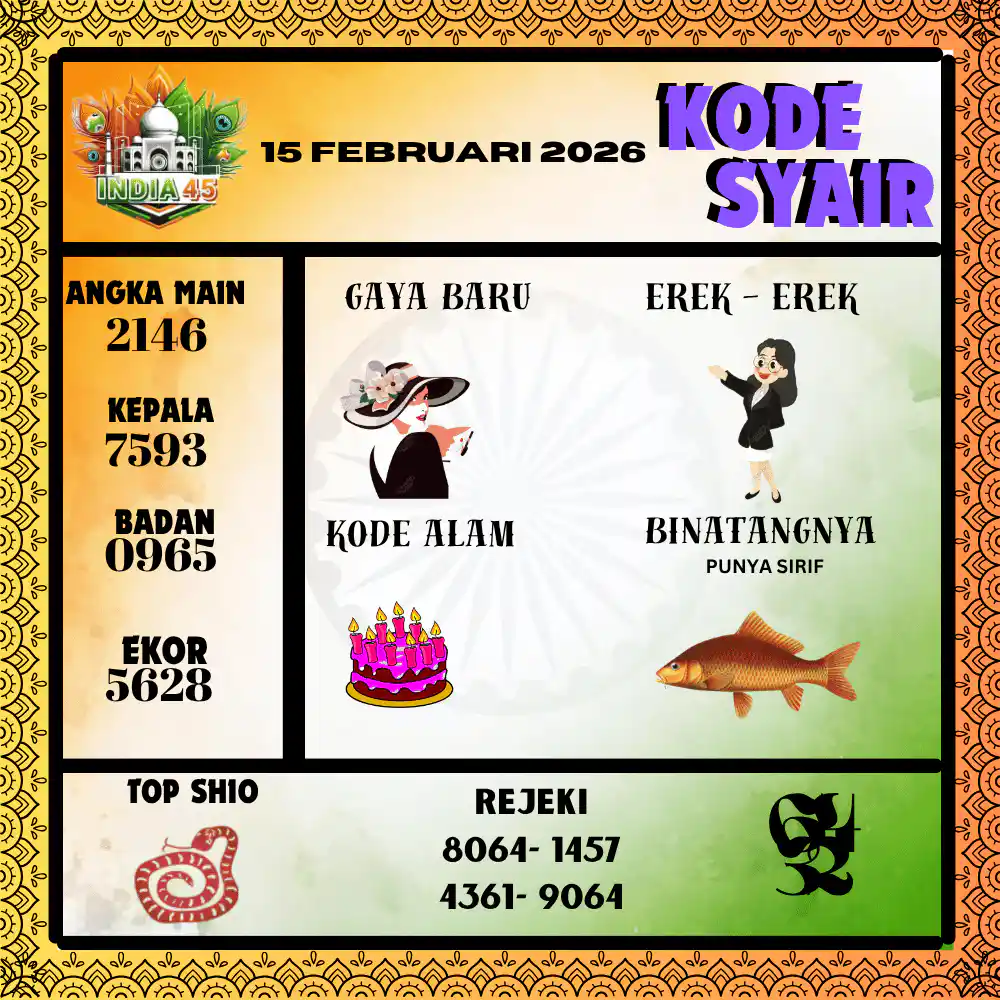 Kode Syair India45 Pools 15 Februari 2026
