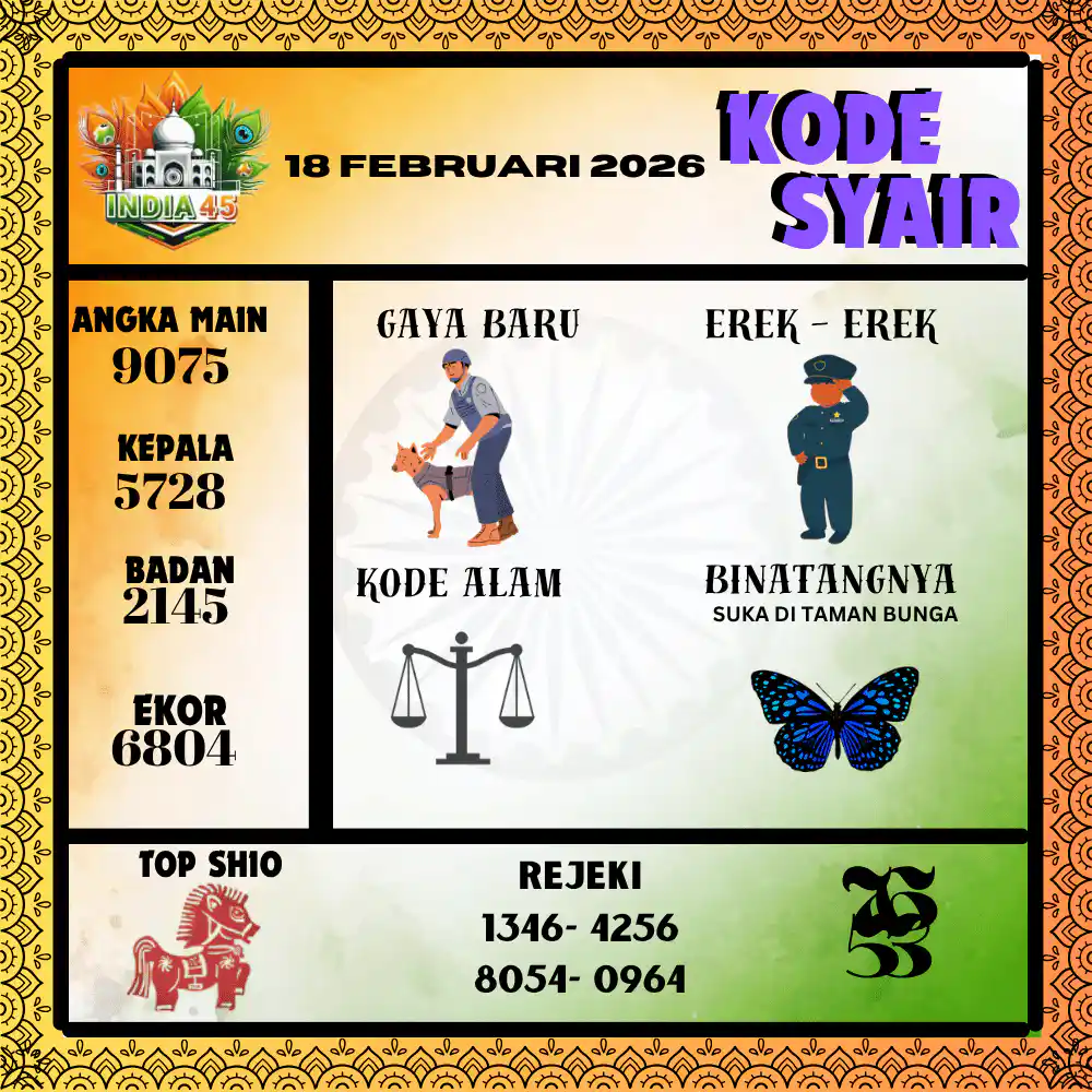Kode Syair India45 Pools 18 Februari 2026