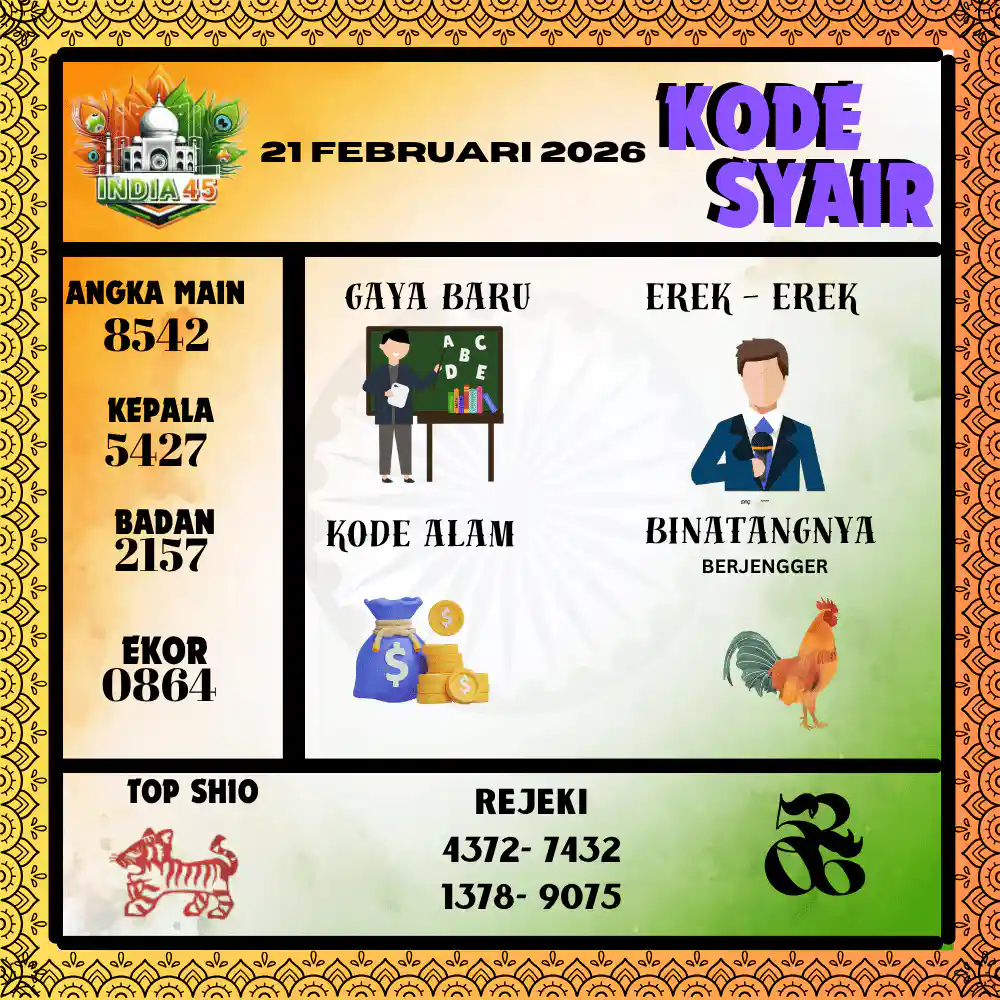 Kode Syair India45 Pools 21 Februari 2026