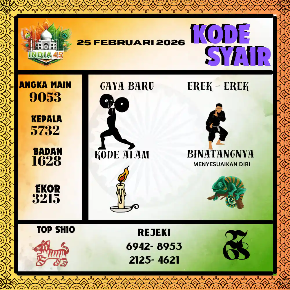 Kode Syair India45 Pools 25 Februari 2026