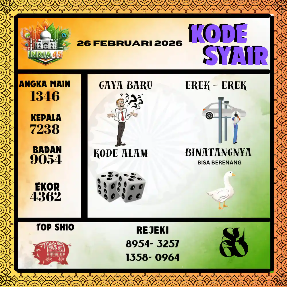 Kode Syair India45 Pools 26 Februari 2026