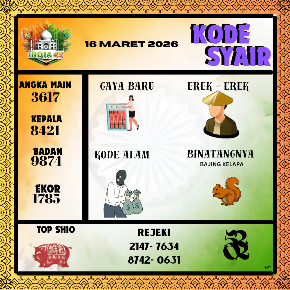 Kode Syair India45 Pools 16 Maret 2026