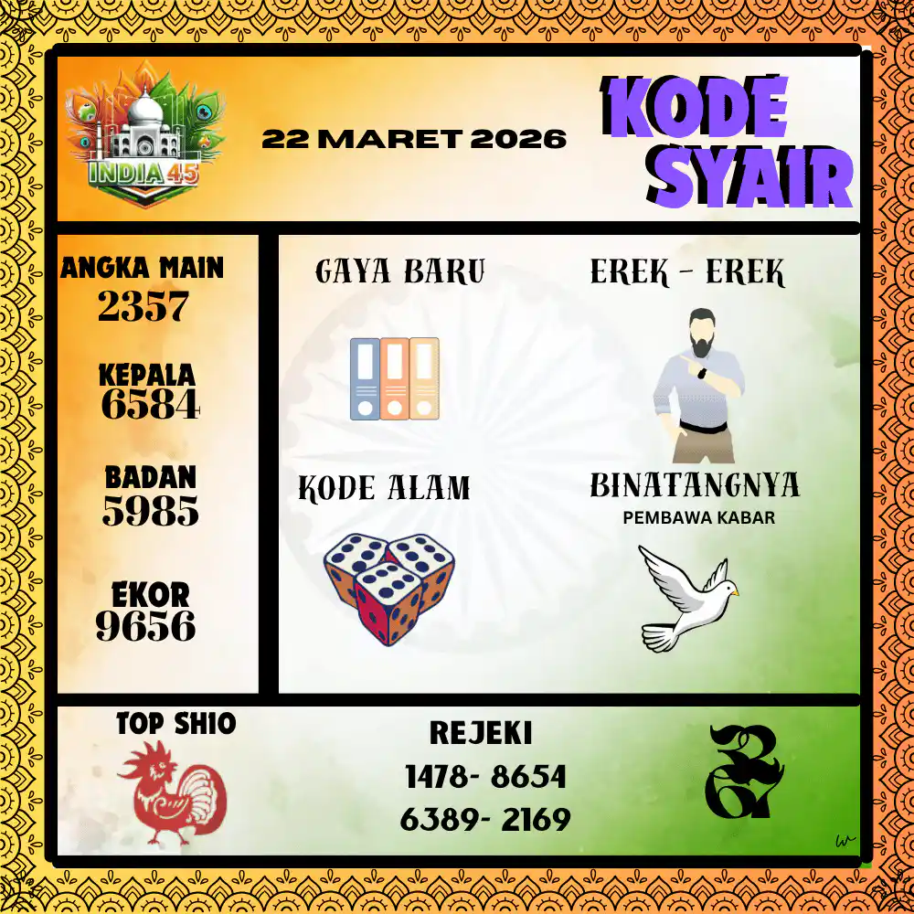Kode Syair India45 Pools 22 Maret 2026