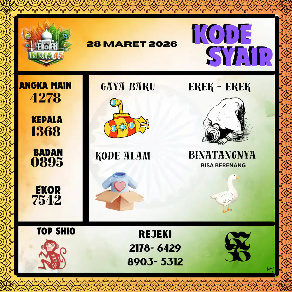 Kode Syair India45 Pools 28 Maret 2026