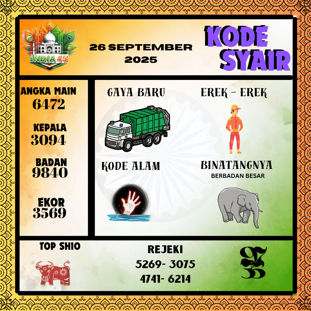Kode Syair India45 Pools 26 September 2025